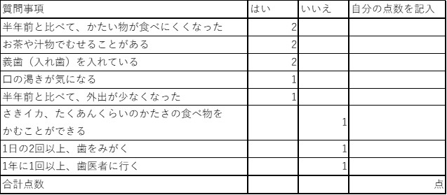 オーラルフレイルをチェックしてみましょう!