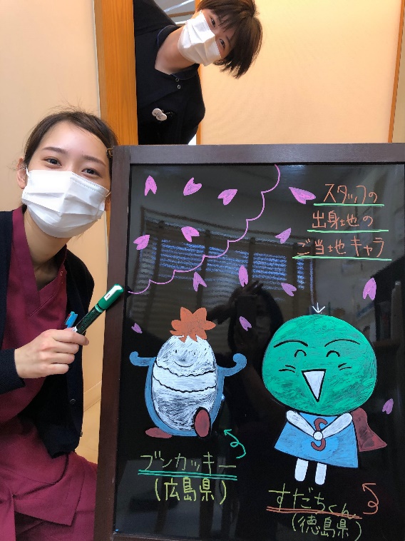 今春の看板の裏側は、歯科衛生士の宮本が描いた力作です!