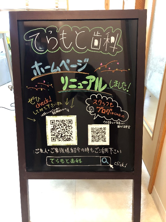 てらもと歯科医院の入り口には、手書きの看板があります。