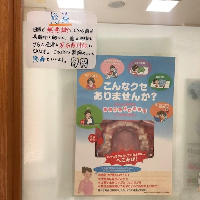 てらもと歯科医院の診療室にもひっそりと態癖についての掲示物が貼ってあります…!